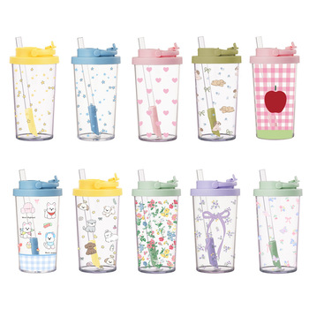 2025 nouveau mignon double boisson Internet célébrité haute valeur enfants paille tasse double compartiment en plastique eau tasse bouchon paille eau